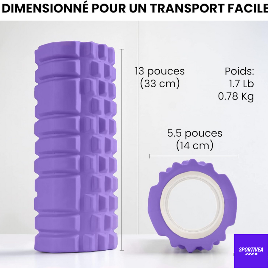 Le rouleau de massage SPORTIVEA mesure 33x13cm et pèse seulement 700g, ce qui le rend léger et facile à transporter dans votre sac de sport.